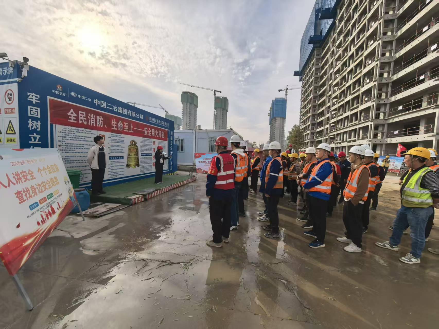 活動(dòng)以“理論精講+實(shí)戰(zhàn)實(shí)操”模式推進(jìn),實(shí)現(xiàn)安全知識(shí)與應(yīng)急技能的雙向提升。理論培訓(xùn)中,項(xiàng)目安全團(tuán)隊(duì)結(jié)合建筑工地典型火災(zāi)案例,通過圖文、視頻等形式,系統(tǒng)講解隱患排查、臨時(shí)用電、物料存儲(chǔ)等核心規(guī)范,并重點(diǎn)示范滅火器“提、拔、握、壓”操作法與火場(chǎng)逃生要領(lǐng),讓參建人員筑牢理論基礎(chǔ)。