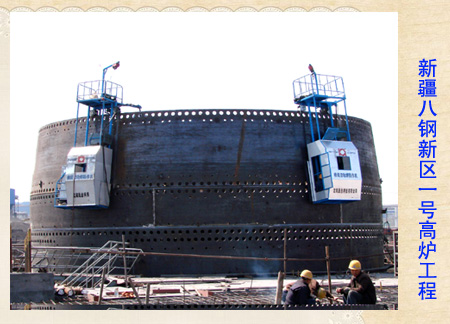 新疆八一鋼廠新1號(hào)、2號(hào)、3號(hào)高爐工程位于新疆烏魯木齊八鋼新區(qū),三座均為2500立方米高爐,每座年產(chǎn)生鐵200萬噸。從2006年底開工至2011年7月底全部投產(chǎn),中國二冶承擔(dān)三座高爐主體項(xiàng)目施工。