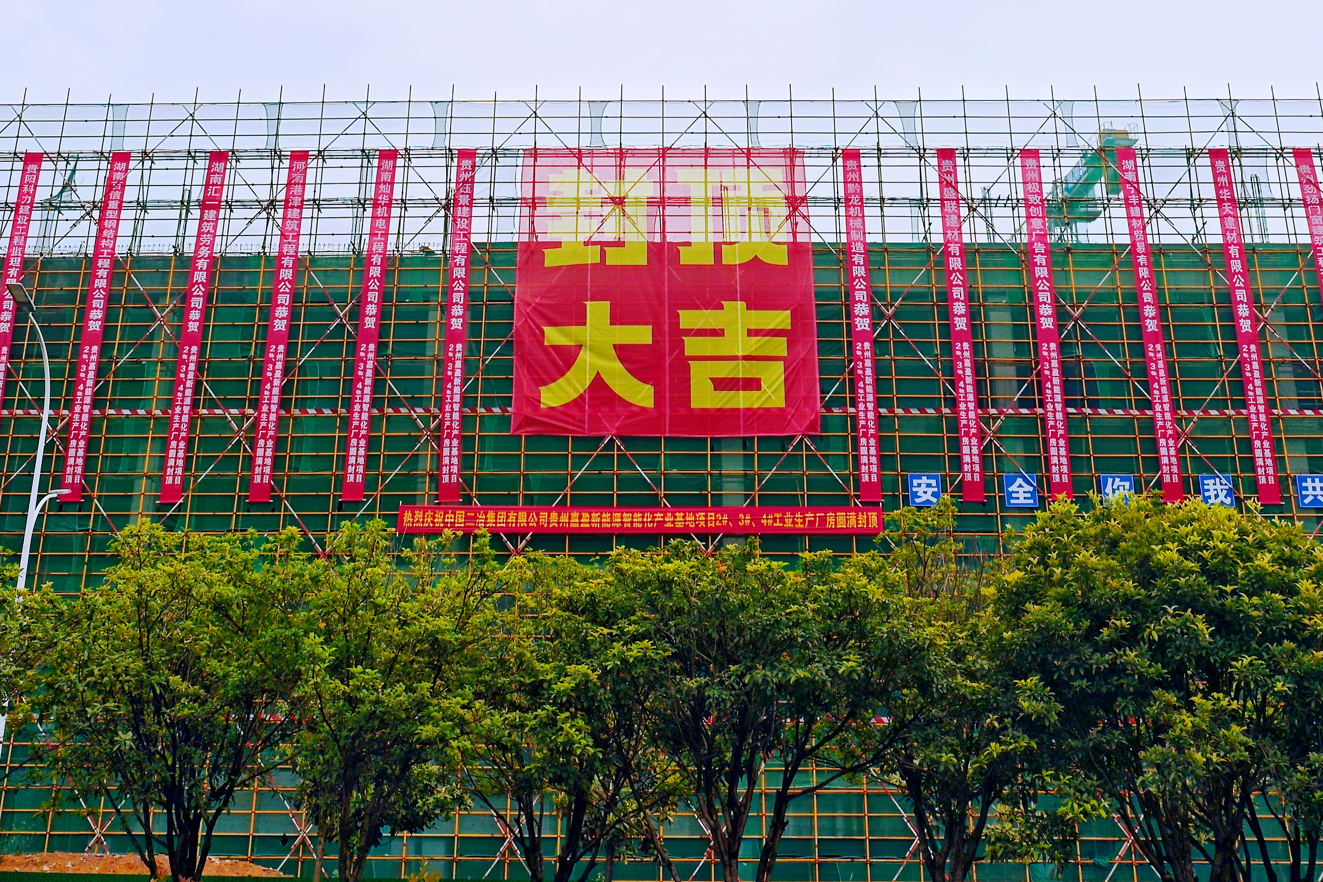 貴州嘉盈新能源智能化產(chǎn)業(yè)基地位于貴州省貴陽市白云區(qū)麥架鎮(zhèn),總用地面積為158509.24平方米,分兩期建設(shè)。一期建筑面積約12.6萬平方米,建設(shè)內(nèi)容為1號(hào)、2號(hào)、3號(hào)工業(yè)廠房、4號(hào)辦公樓、5號(hào)宿舍樓。在施工過程中,項(xiàng)目團(tuán)隊(duì)面對(duì)地形復(fù)雜、雨季施工等挑戰(zhàn),以精細(xì)化管控為主線,系統(tǒng)推進(jìn)全過程質(zhì)量創(chuàng)優(yōu)。通過科學(xué)劃分作業(yè)區(qū)段、合理安排工序穿插、精準(zhǔn)調(diào)配人材機(jī)資源,按原策劃節(jié)點(diǎn)全面封頂,確保了項(xiàng)目整體建設(shè)進(jìn)度。后續(xù)將重點(diǎn)強(qiáng)化安全生產(chǎn)標(biāo)準(zhǔn)化建設(shè),全面落實(shí)揚(yáng)塵防治“六個(gè)百分百”要求;深化智慧工地?cái)?shù)字化管理應(yīng)用,通過AI視頻監(jiān)控、環(huán)境監(jiān)測(cè)聯(lián)動(dòng)噴淋等全力打造“進(jìn)度領(lǐng)先、質(zhì)量示范、安全標(biāo)桿、綠色智慧”的精品工程。